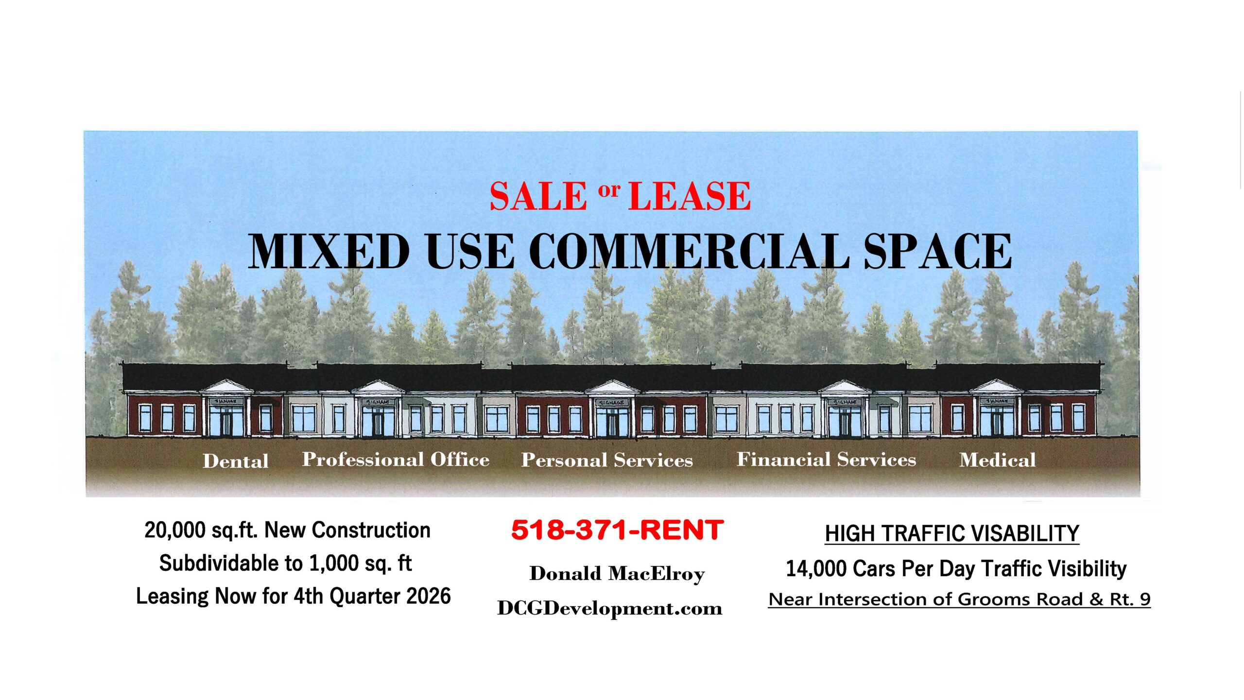 Grooms Road Clifton Park, NY Contact Us Today For a Free Consultation First Name*Last Name*Email* CommentsVerification Property Details Grooms Road - Mixed Use Commercial - For Sale or Lease View Current Availability Similar Properties Malta Commons Business Park Malta Commons Business Park at Exit 12 of the Northway has your next office or retail location! DCG Development Co. […] Learn More 841 Route 146 – Prime Retail/Office Space Learn More Town Center Towne Center is an open-air community shopping center on Route 9 in Halfmoon with plenty of parking. Town Center is […] Learn More